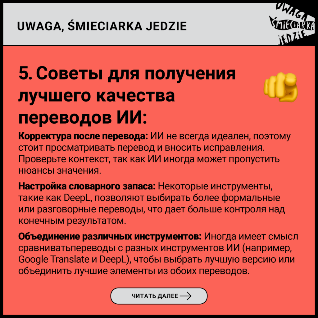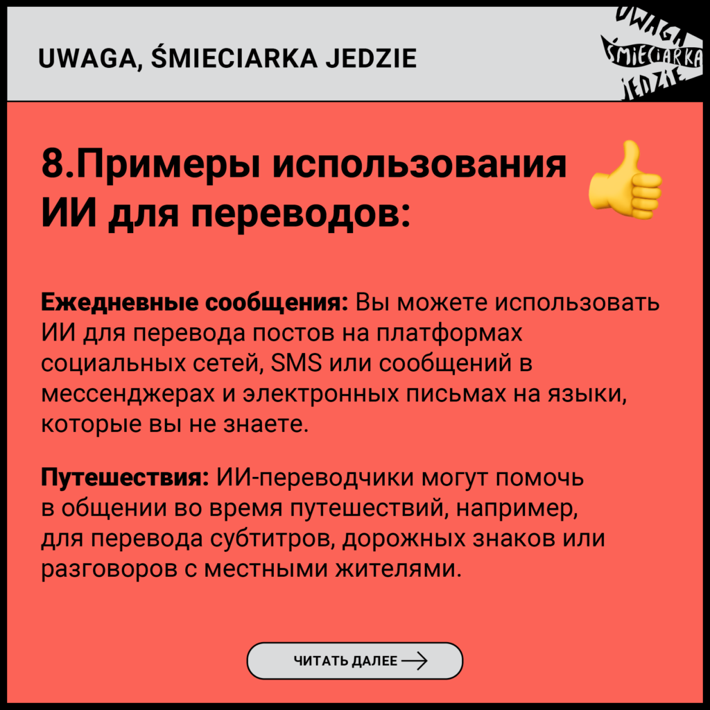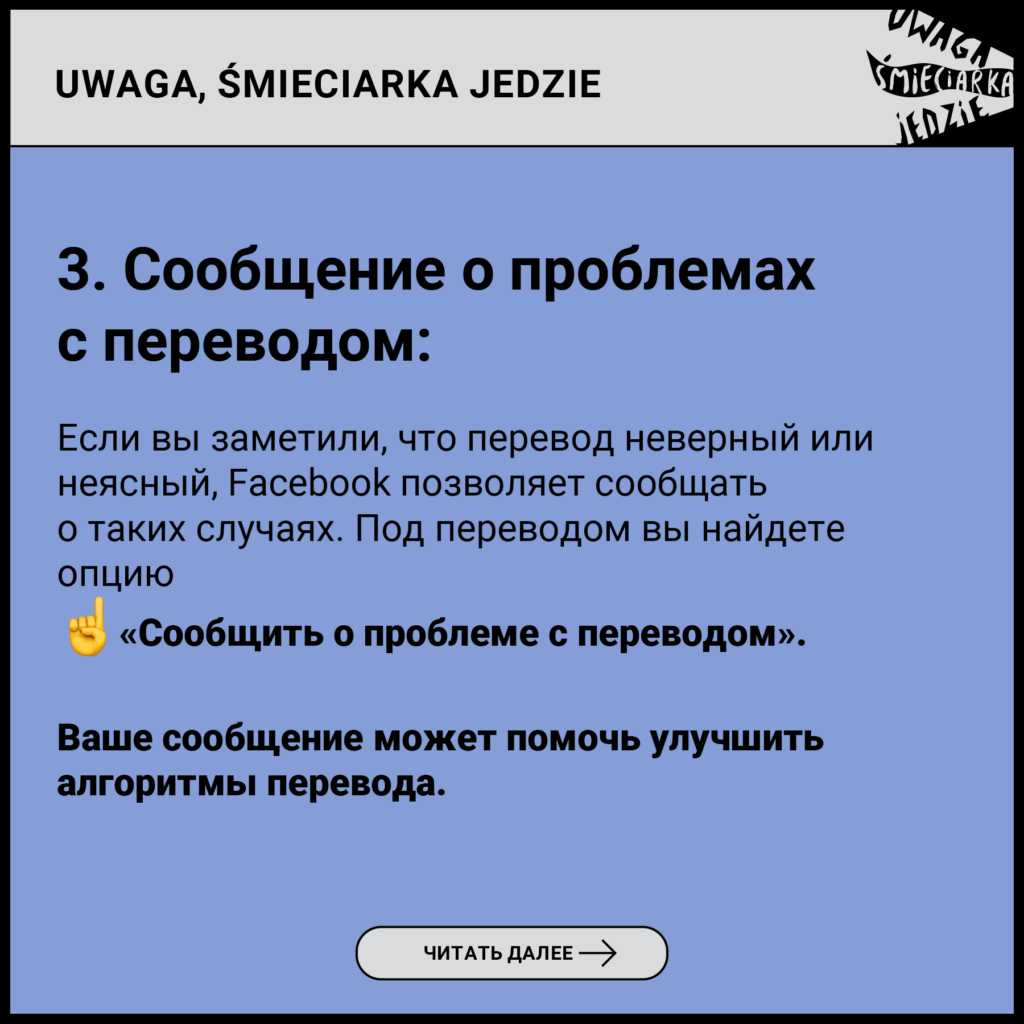 17. Фонд не несёт ответственности за деятельность групп, которыми он не управляет, но которые используют названия, схожие с «Uwaga, śmieciarka jedzie».