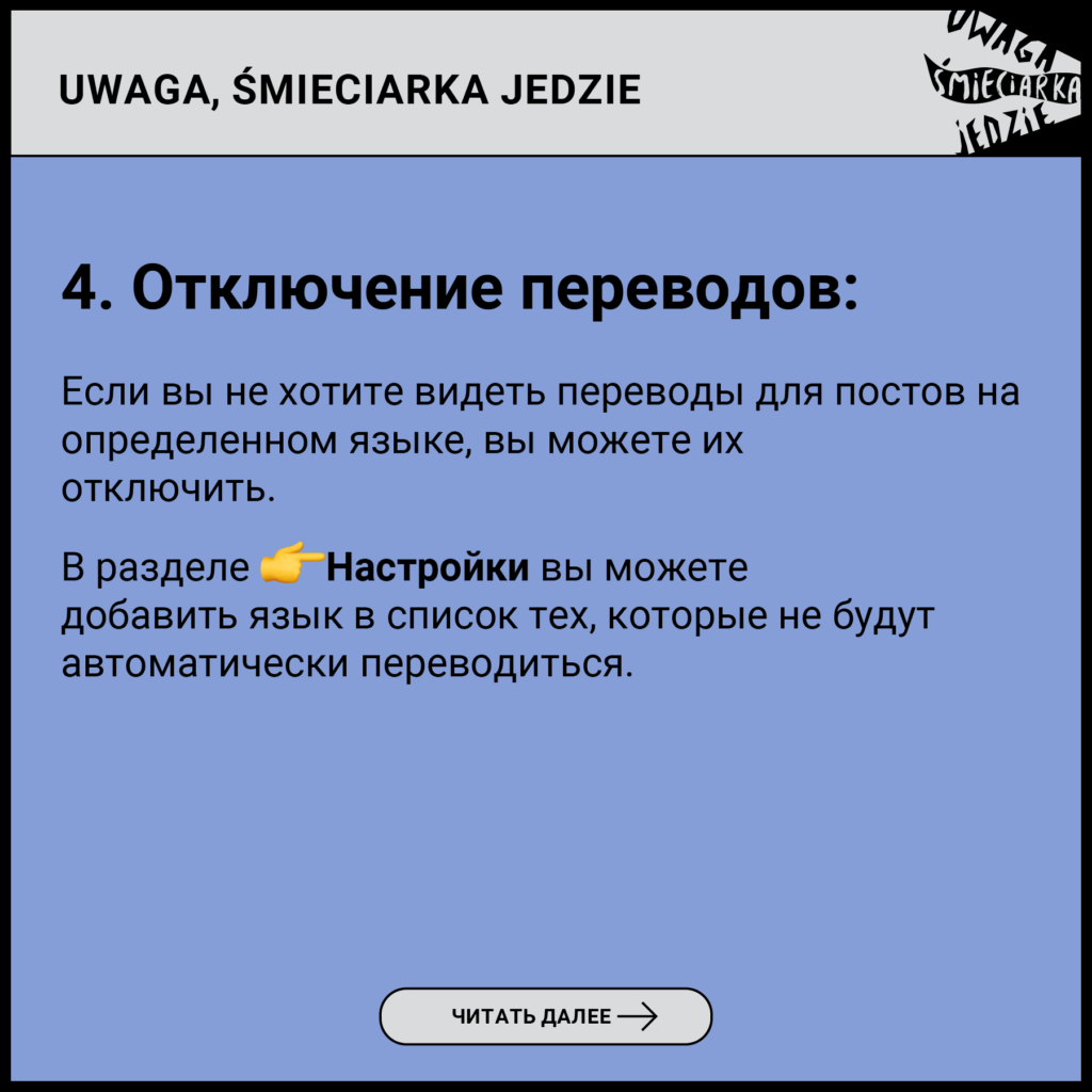 15. Присоединяясь к группе, вы даёте согласие на обработку ваших персональных данных Фондом «Uwaga, Śmieciarka Jedzie» с юридическим адресом в Жирардове (Администратор) в соответствии с политикой конфиденциальности, доступной по ссылке: https://www.uwagasmieciarkajedzie.org/polityka-prywatnosci/